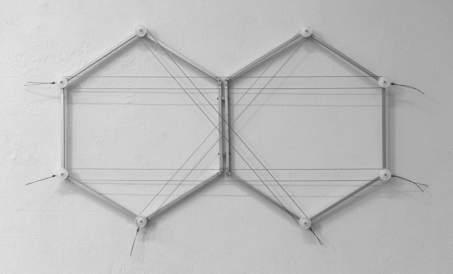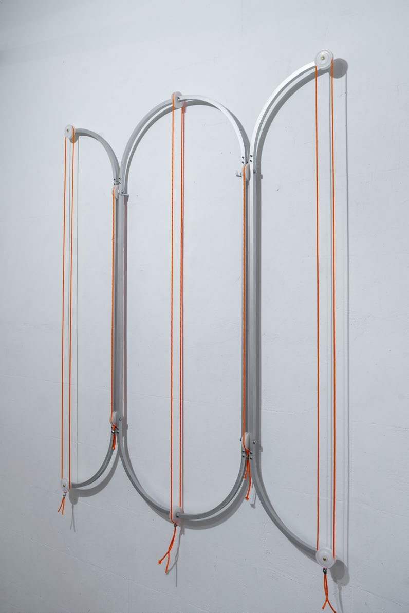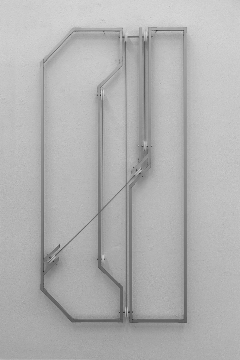 The essential components that functioning the structure of my pieces are the manufacturing (metal/plastic/…) parts that could be found easily in Baumarkt of Germany. These components or ready-made products and their self-functionalization effects carried out a strong sense of low-key mechanism and seems to be ready to flow automatically in the so-called production line of industry. However, it is an illusion, a real illusion. The dynamic flow graphics a surreal prospect in psyche only, the physical reality is that the manufacturing parts functionalise the aesthetic aspect of the piece without any industrial functions that general does.