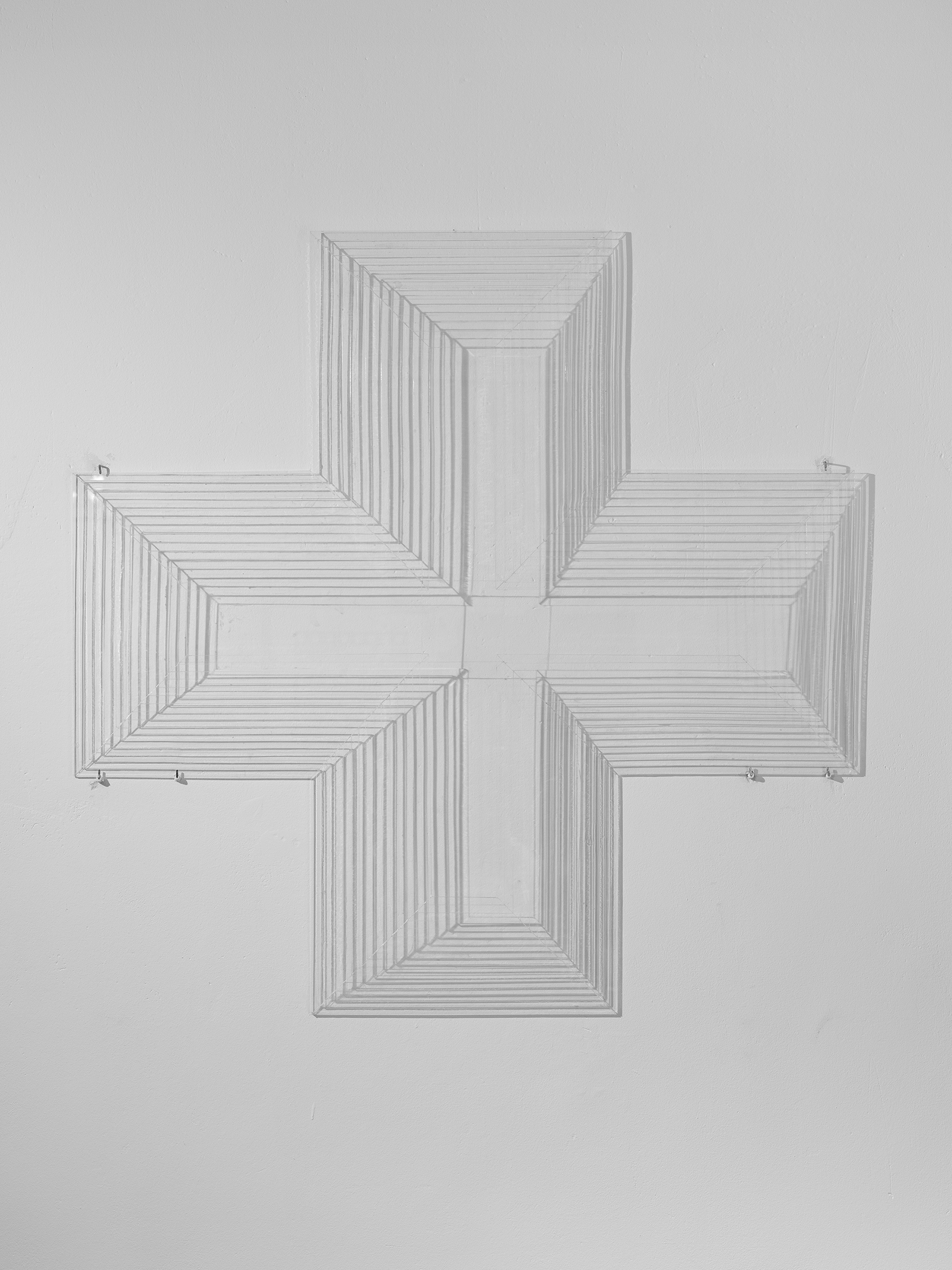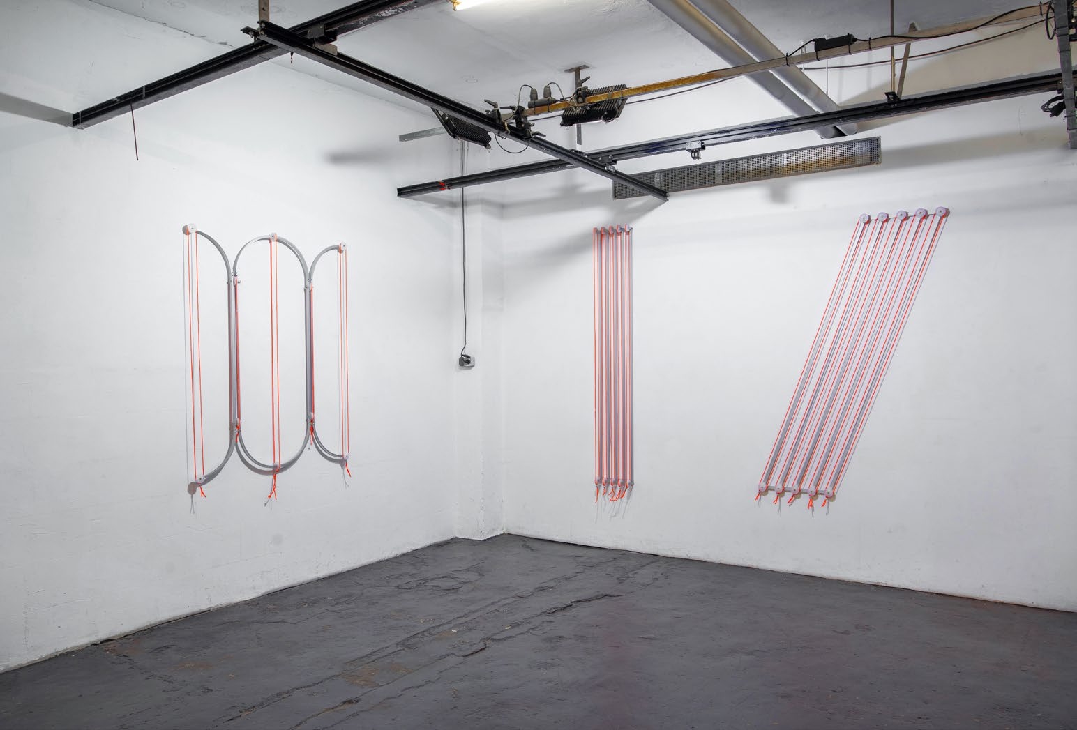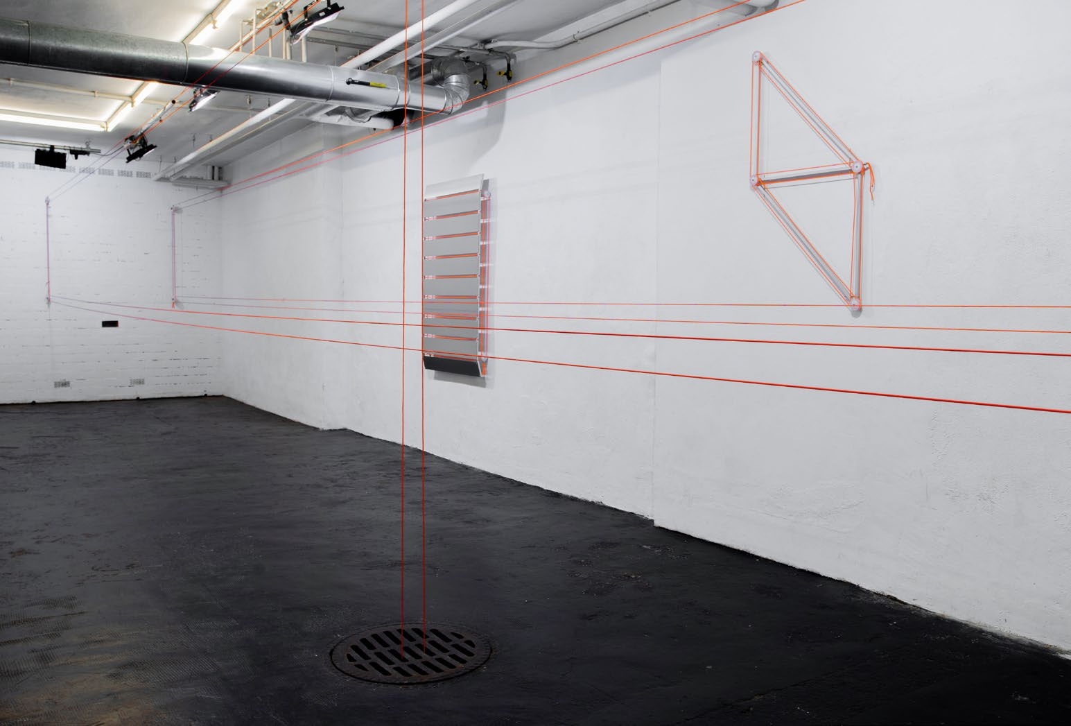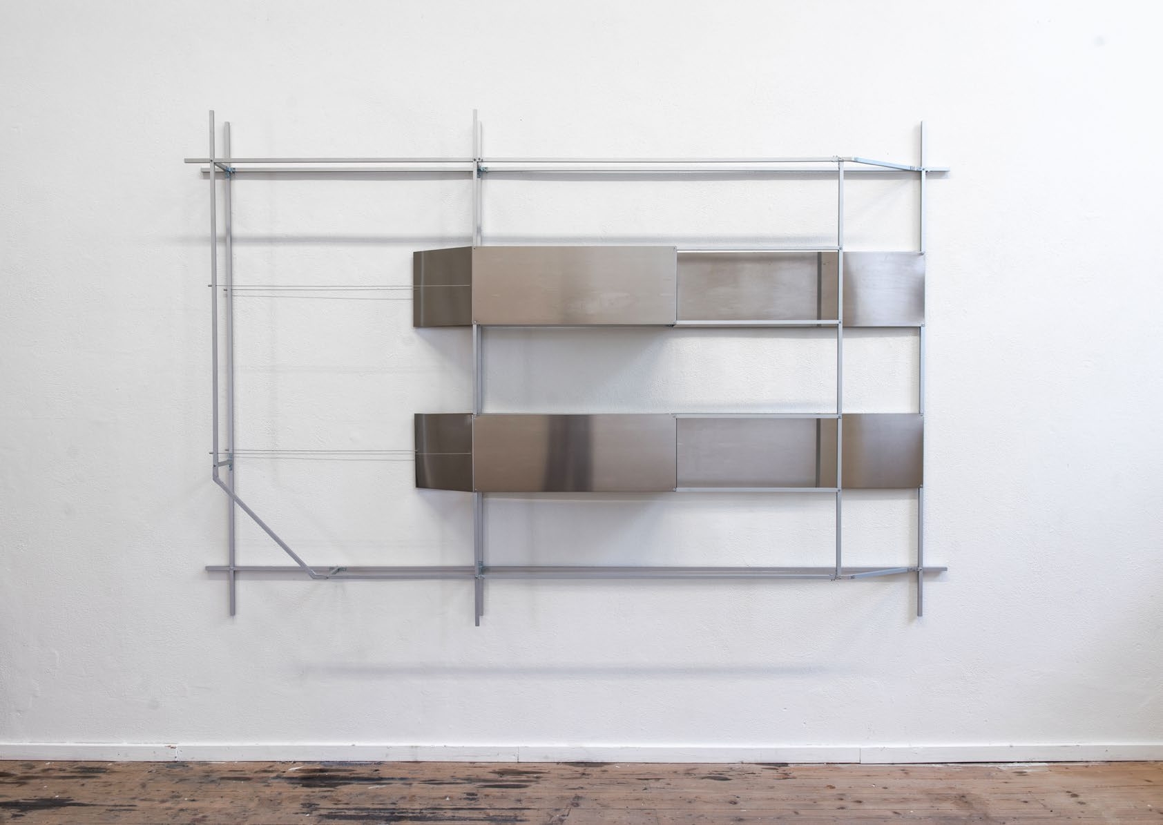 Aus im Baumarkt gekauften Materialien, wie z. B. Glas- oder Metallplatten, Kunststoffrollen, Nylonschnüren, Schrauben und Muttern geformte Skulpturen und Wandobjekte finden sich im Kontext mit einer großformatigen Rauminstallation aus den gleichen Materialien. Die vom Künbstler geschaffenen Gebilde, werden dabei aus diesen Materialien so zu Objekten zusammengesetzt, dass sie in ihrer äußeren Erscheinung an bestimmte technische Gegenstände erinnern. Die einzelnen Bauteile werden dabei ihrer eigentlichen Funktion enthoben, werden auf die bloße optische Ähnlichkeit reduziert und in einem neuen Kontext verwendet.